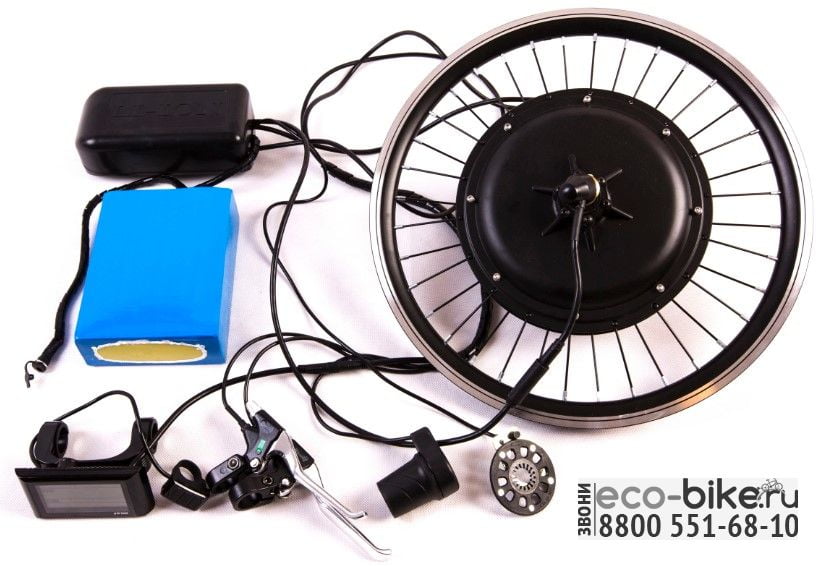 Комлект состоит из: мотор колеса, ручек газа, контроллера, проводов, зарядного устройства, комплекта ключей и АКБ также идет в комплекте и входит в стоимость.